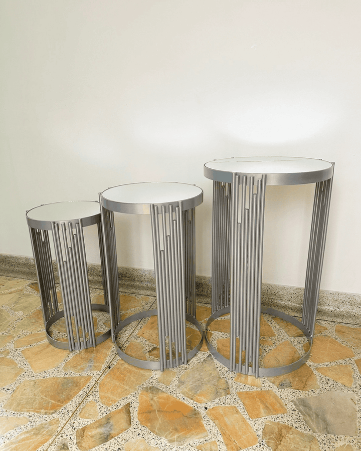Mesas plateadas de balines y espejo