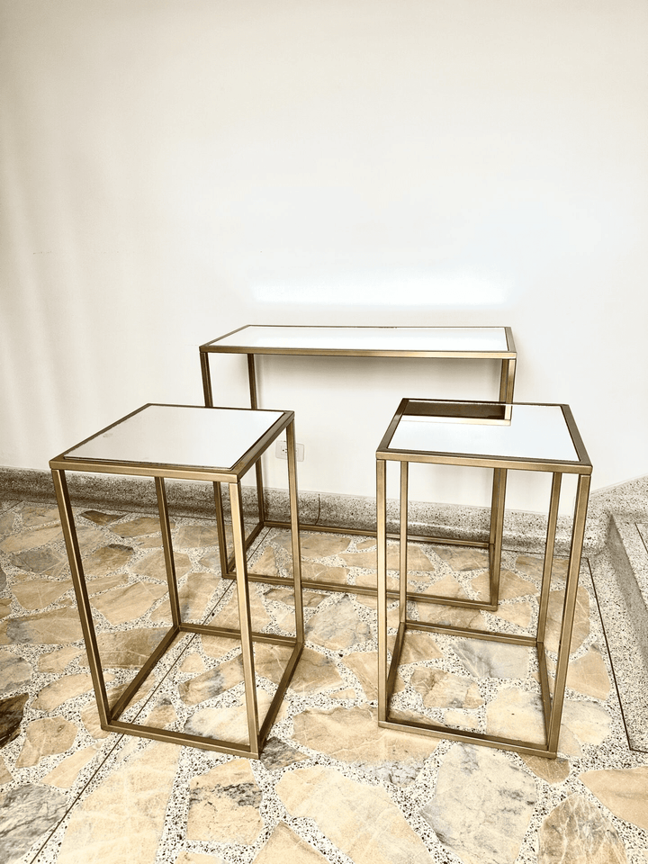 Set de mesas doradas Fatima espejo x 3